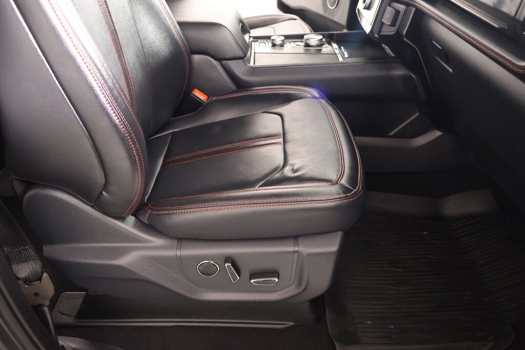 THIS VEHICLE COMES EQUIPPED WITH THE FOLLOWING OPTIONS AND FEATURES: Equipment Group 303A Stealth Package (1st & 2nd Row Floor Mats w/Logo, Panoramic Vista Roof, and Power-Folding Sideview Mirrors w/Autofold), Stealth Edition Package (Black Headlamp and Fog Lamp Bezels, Black Rear Bumper, Black Roof Rack Side Rails, Body Color Door Handles, Ebony Black Bar and Mesh Grille, Ebony Black Power Deployable Running Boards, Ebony Black Tailgate Applique, Heated/Ventilated Lthr Front Captain's Chairs (A), LED Taillamp w/Black Bezels, Sport Tuned Suspension, and Wheels: 22" Premium Black-Painted Aluminum), Cooper Certified Certified, 4WD, 12 Speakers, 15.5" LCD Capacitive Touchscreen, 3.31 Axle Ratio, 360-Degree Camera w/Split View, 3rd row seats: split-bench, 4-Wheel Disc Brakes, ABS brakes, Adjustable pedals, Air Conditioning, Alloy wheels, AM/FM radio: SiriusXM with 360L, Auto High-beam Headlights, Auto-dimming door mirrors, Auto-dimming Rear-View mirror, Automatic temperature control, Brake assist, Bumpers: body-color, Compass, Connected Navigation, ControlTrac w/3.73 Axle Ratio, Delay-off headlights, Driver door bin, Driver vanity mirror, Dual front impact airbags, Dual front side impact airbags, Electronic Stability Control, Emergency communication system: SYNC 4 911 Assist, Exterior Parking Camera Rear, Four wheel independent suspension, Front anti-roll bar, Front Bucket Seats, Front Center Armrest, Front dual zone A/C, Front fog lights, Front reading lights, Fully automatic headlights, Garage door transmitter, Heated & Ventilated Leather Front Captain's Chairs, Heated door mirrors, Heated front seats, Heated rear seats, Heated steering wheel, Illuminated entry, Instrument Panel Cluster, Leather steering wheel, Low tire pressure warning, Memory seat, Navigation system: Connected Navigation, Occupant sensing airbag, Outside temperature display, Overhead airbag, Overhead console, Panic alarm, Passenger door bin, Passenger vanity mirror, Pedal memory, Power door mirrors, Power driver seat, Power Liftgate, Power moonroof, Power passenger seat, Power steering, Power windows, Radio data system, Radio: B&O Sound System by Bang & Olufsen, Rain sensing wipers, Rear air conditioning, Rear anti-roll bar, Rear reading lights, Rear window defroster, Rear window wiper, Reclining 3rd row seat, Remote keyless entry, Reverse Brake Assist, Security system, SiriusXM w/360L, Speed control, Speed-sensing steering, Speed-Sensitive Wipers, Split folding rear seat, Spoiler, Steering wheel memory, Steering wheel mounted audio controls, SYNC 4 w/Enhanced Voice Recognition, SYNC 4A w/Enhanced Voice Recognition, Tachometer, Telescoping steering wheel, Tilt steering wheel, Traction control, Trip computer, Turn signal indicator mirrors, Variably intermittent wipers, Ventilated front seats, Voltmeter, and Wheels: 20" Bright Machined Aluminum.