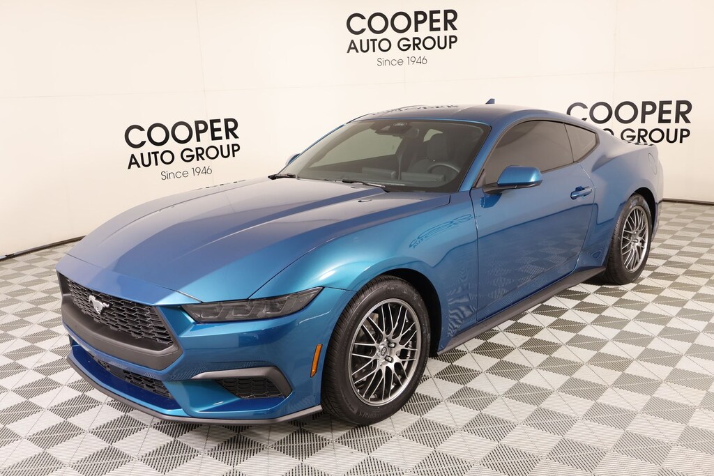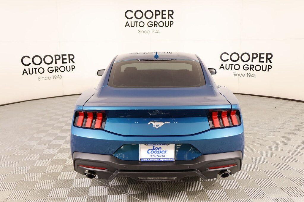 ⢠Joe Cooper Hyundai **405-733-1611** Adriatic Blue Metallic 2026 Ford Mustang EcoBoost RWD EcoBoost 2.3L I4 GTDi DOHC Turbocharged VCT Recent Arrival! NAVIGATION/GPS/NAV, REAR ENTERTAINMENT SYSTEM DVD PLAYER, REAR VIEW CAMERA, SYNC, ONE OWNER, KEYLESS ENTRY, BLUETOOTH HANDS FREE, Cooper Certified.