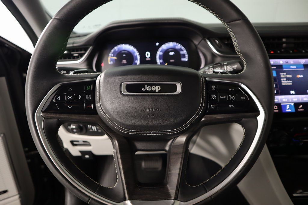 THIS VEHICLE COMES EQUIPPED WITH THE FOLLOWING OPTIONS AND FEATURES: Quick Order Package 22N, Trailer Tow Group (B) (DISC) (Heavy-Duty Engine Cooling and Rear Load Leveling Suspension), Cooper Certified Certified, 10 Speakers, 3.45 Rear Axle Ratio, 3rd row seats: split-bench, 4-Wheel Disc Brakes, ABS brakes, Active Noise Control System, Air Conditioning, Alloy wheels, AM/FM radio: SiriusXM with 360L, Anti-whiplash front head restraints, Audio memory, Auto High-beam Headlights, Auto-dimming door mirrors, Auto-dimming Rear-View mirror, Automatic temperature control, Brake assist, Bumpers: body-color, Compass, Delay-off headlights, Driver door bin, Driver vanity mirror, Dual front impact airbags, Dual front side impact airbags, Electronic Stability Control, Emergency communication system, Four wheel independent suspension, Front anti-roll bar, Front Bucket Seats, Front Center Armrest w/Storage, Front dual zone A/C, Front fog lights, Front reading lights, Fully automatic headlights, Garage door transmitter, Heated door mirrors, Heated front seats, Heated rear seats, Heated steering wheel, Illuminated entry, Knee airbag, Low tire pressure warning, Memory seat, Nappa Leather Seats, Navigation System, Normal Duty Suspension, Occupant sensing airbag, Outside temperature display, Overhead airbag, Overhead console, Panic alarm, Passenger door bin, Passenger vanity mirror, Power door mirrors, Power driver seat, Power Fold Seatbacks, Power Liftgate, Power moonroof, Power passenger seat, Power steering, Power windows, Radio data system, Radio: Uconnect 5 Nav w/10.1" Display, Rain sensing wipers, Rear air conditioning, Rear anti-roll bar, Rear reading lights, Rear window defroster, Rear window wiper, Reclining 3rd row seat, Remote keyless entry, Security system, Speed control, Speed-Sensitive Wipers, Split folding rear seat, Spoiler, Steering wheel memory, Steering wheel mounted audio controls, Tachometer, Telescoping steering wheel, Tilt steering wheel, Traction control, Trip computer, Turn signal indicator mirrors, Variably intermittent wipers, Ventilated front seats, Voltmeter, and Wheels: 20" x 8.5" Machined Face Aluminum.