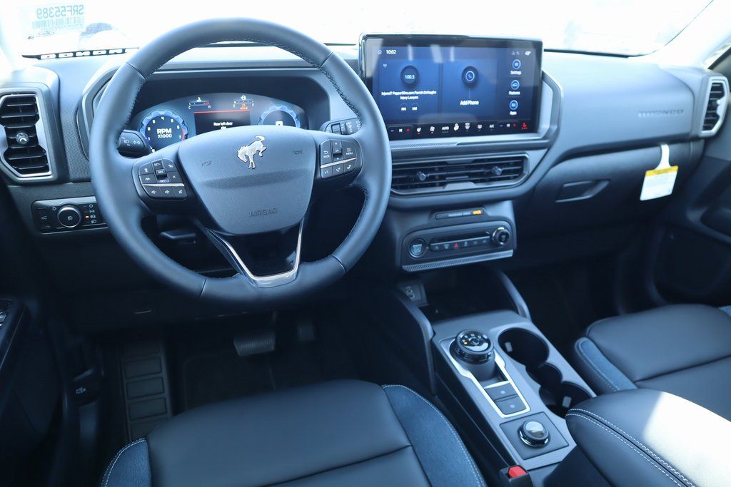 I got a 2025 Big Bend with the black diamond off road package. The steel modular front and rear in combination with bush guard gives this year model. A very aggressive off road look. With the ability to easily mount accessories and power them with the factory installed auxiliary switches. Hitch receiver seamlessly mounted into the rear steel bumper flanked by some very chunky recovery points. The upgraded aluminum rims wrapped with Continental all-terrains. It make this the most capable bronco sport yet. The interior of the 2025 has been updated with a new 13 inch touchscreen with Android Auto and apple car play. The lines of the dash flow elegantly from the new infotainment screen to the new all digital 12 inch gauge chaster. Toggling through the different modes on the gauge chaster is very intuitive, and all the displays are laid out very cleanly. Moving from gauge chaster the center storage cubby just below the infotainment screen there is a wireless charger and USB/ USB-c ports. The passenger side of that same cubby gets a handle and a matching one on the roof just in case the driver bucks a little too much. The passenger also gets a mesh storage area. That leads us to the fact this vehicle has tons of storage options all throughout. You have pockets on the sides of the front two seat big enough for the latest new phones. Very generous door storage on all four doors plus huge glove box and center console with 12 volt outlet. The back side of the center console has air vents and another 12 volt outlet plus a 110 outlet. Now getting to the cargo area it is massive for a crossover SUV. With off road package you get a cargo management system and a very nice rubber mat. Under that there is a full size tire plus scissor jack and funnel to use with the capless filler system. On the liftgate there isa pair of very bright led lights turned on with a switch in the cargo area. This feature packed vehicle has tons awesome gadgets and hidden a little homages I spend all day just talk that. At the end of the day it is car. So how does it drive. It is wonderful, the steering and pedal response is beautiful. Rides very smooth and little to no road noise going down the highway. The active cruise control and co-pilot 360 have been very handy. The car literally drives itself most of the time. There is not enough good things I could same about this car. I love it and you pick one too. You will see what I mean. - 5.0