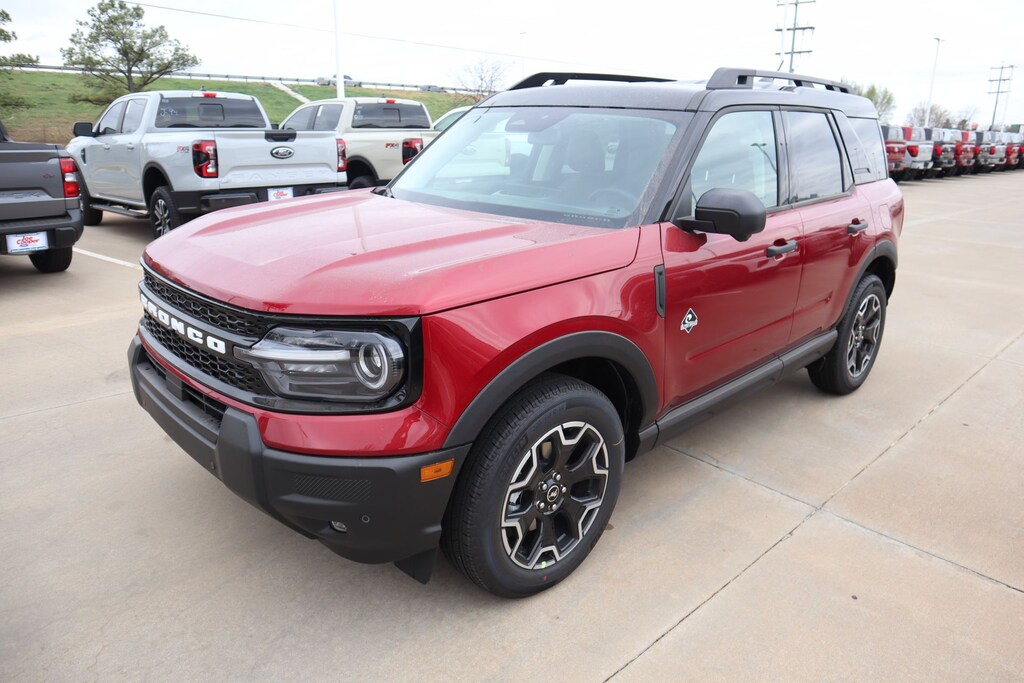 Joe Cooper Ford of Shawnee is pleased to offer this superb 2026 Ford Bronco Sport Outer Banks in Ruby Red Metallic Tinted Clearcoat. Well equipped with Equipment Group 300A Standard Package (AM/FM Stereo, Front Driver/Passenger Seat Back Map Pockets, SiriusXM with 360L, SYNC 4 with Enhanced Voice Recognition, and Wheels: 18" Ebony Black), Ford Connectivity Package (1-Year Included), Internet access capable: 5G Modem - Ford Connectivity Package, Outer Banks Tech Package+ (Connected Navigation (1-Year Included) and Radio: HD w/B&O Sound System by Bang & Olufsen), 360-Degree Camera with Trail View, 4-Wheel Disc Brakes, 6 Speakers, ABS brakes, Air Conditioning, Alloy wheels, AM/FM radio: SiriusXM with 360L, Apple CarPlay/Android Auto, Auto High-beam Headlights, Auto-dimming Rear-View mirror, Automatic temperature control, Brake assist, Compass, Delay-off headlights, Driver door bin, Driver vanity mirror, Dual front impact airbags, Dual front side impact airbags, Electronic Stability Control, Emergency communication system: SYNC 4 911 Assist, Exterior Parking Camera Rear, Four wheel independent suspension, Front anti-roll bar, Front Bucket Seats, Front Center Armrest, Front dual zone A/C, Front fog lights, Front Parking Sensors, Front reading lights, Fully automatic headlights, Heated door mirrors, Heated front seats, Heated steering wheel, Illuminated entry, Knee airbag, Low tire pressure warning, Memory seat, Occupant sensing airbag, Outside temperature display, Overhead airbag, Overhead console, Panic alarm, Passenger door bin, Passenger vanity mirror, Power door mirrors, Power driver seat, Power passenger seat, Power steering, Power windows, Radio data system, Rear anti-roll bar, Rear Parking Sensors, Rear reading lights, Rear seat center armrest, Rear window defroster, Rear window wiper, Remote keyless entry, Reverse Brake Assist, Security system, Speed control, Speed-sensing steering, Speed-Sensitive Wipers, Split folding rear seat, Steering wheel mounted audio controls, Tachometer, Telescoping steering wheel, Tilt steering wheel, Traction control, Trip computer, and Variably intermittent wipers.