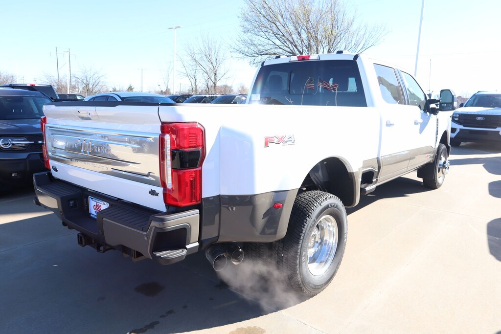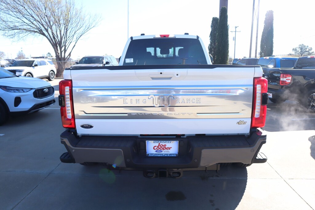 Joe Cooper Ford of Shawnee is honored to offer this dependable 2026 Ford F-350SD King Ranch in Star White Metallic Tri-Coat. Well equipped with Camper Package (Rear Stabilizer Bar and Auxiliary Springs), Ford Connectivity Package (1-Year Included), FX4 Off-Road Package (Hill Descent Control, Off-Road Specifically Tuned Shock Absorbers, and Unique FX4 Off-Road Box Decal), GVWR: 14,000 Lb Payload Package, Heavy-Service Front Suspension Package, Internet access capable: 5G Modem - Ford Connectivity Package, Order Code 720A (17" Forged Polished Aluminum Wheels, Flow-Through Console, Limited Slip with 3.73 Axle Ratio, Radio: B&O Unleashed Sound System by Bang & Olufsen, SiriusXM with 360L, SYNC 4 with Enhanced Voice Recognition, and Unique King Ranch Leather 40/Console/40 Seats), 4WD, Navigation system: Connected Navigation, 4-Wheel Disc Brakes, 410 Amp Dual Alternators, ABS brakes, Adjustable pedals, Air Conditioning, Alloy wheels, AM/FM radio: SiriusXM with 360L, Auto High-beam Headlights, Auto-dimming Rear-View mirror, Automatic temperature control, Brake assist, Compass, Delay-off headlights, Driver door bin, Driver vanity mirror, Dual front impact airbags, Dual front side impact airbags, Dual rear wheels, Electronic Stability Control, Emergency communication system: SYNC 4 911 Assist, Engine Block Heater, Front anti-roll bar, Front Bucket Seats, Front Center Armrest, Front dual zone A/C, Front fog lights, Front License Plate Bracket, Front reading lights, Fully automatic headlights, Garage door transmitter, Heated door mirrors, Heated front seats, Heated rear seats, Heated steering wheel, Illuminated entry, Low tire pressure warning, Memory seat, Outside temperature display, Overhead airbag, Overhead console, Panic alarm, Passenger door bin, Passenger vanity mirror, Pedal memory, Power door mirrors, Power driver seat, Power passenger seat, Power steering, Power windows, Pro Power Onboard - 2kW, Rain sensing wipers, Rapid-Heat Supplemental Cab Heater, Rear anti-roll bar, Rear reading lights, Rear seat center armrest, Rear step bumper, Rear window defroster, Remote keyless entry, SecuriCode Keyless Entry Keypad (driver's Side), Security system, Speed control, Split folding rear seat, Steering wheel mounted audio controls, Tachometer, Telescoping steering wheel, Tilt steering wheel, Traction control, Trip computer, Turn signal indicator mirrors, Twin Panel Power Moonroof, Upfitter Switches (6), Variably intermittent wipers, and Ventilated front seats.