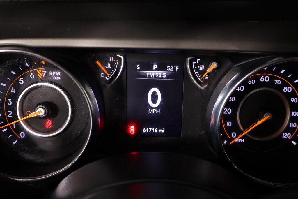 THIS VEHICLE COMES EQUIPPED WITH THE FOLLOWING OPTIONS AND FEATURES: Auxiliary Switch Group (240 Amp Alternator, 700 Amp Maintenance Free Battery, and Auxiliary Switches), GVWR: 6,250 lbs w/Max Tow Package, Max Tow Package w/4.10 Axle Ratio (4.10 Rear Axle Ratio, Anti-Lock 4-Wheel Disc Heavy Duty Brakes, Anti-Spin Differential Rear Axle, Black Molded-In-Color Fender Flares (2-Piece), Class IV Hitch Receiver, Dana M210 Wide Front Axle, Dana M220 Wide Rear Axle, Daytime Running Lamp System, Heavy-Duty Engine Cooling, and Trailer Hitch Zoom), Quick Order Package 24B, Smoker's Group (Cigar Lighter and Removable Ash Tray), Front fog lights, Normal Duty Suspension, ParkView Rear Back-Up Camera, 110 mph Vehicle Max Speed Calibration, 4-Wheel Disc Brakes, 8 Speakers, ABS brakes, Air Conditioning, AM/FM radio, Black 3-Piece Hard Top, Brake assist, Cloth Low-Back Bucket Seats, Compass, Delay-off headlights, Driver door bin, Driver vanity mirror, Dual front impact airbags, Dual front side impact airbags, Electronic Stability Control, Freedom Panel Storage Bag, Front anti-roll bar, Front Bucket Seats, Front Center Armrest w/Storage, Front reading lights, Integrated roll-over protection, Low tire pressure warning, Manufacturer's Statement of Origin, MOPAR All-Weather Floor Mats (DISC), Occupant sensing airbag, Outside temperature display, Passenger door bin, Passenger vanity mirror, Power steering, Radio data system, Radio: Uconnect 3 w/5 Display, Rear anti-roll bar, Rear reading lights, Rear Sliding Window, Rear Window Defroster, Speed control, Split folding rear seat, Steering wheel mounted audio controls, Tachometer, Telescoping steering wheel, Tilt steering wheel, Traction control, Trip computer, Variably intermittent wipers, and Wheels: 17 x 7.5 Black Steel Styled.