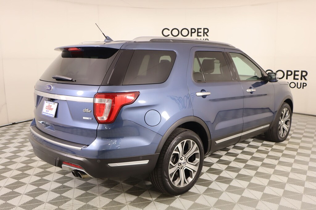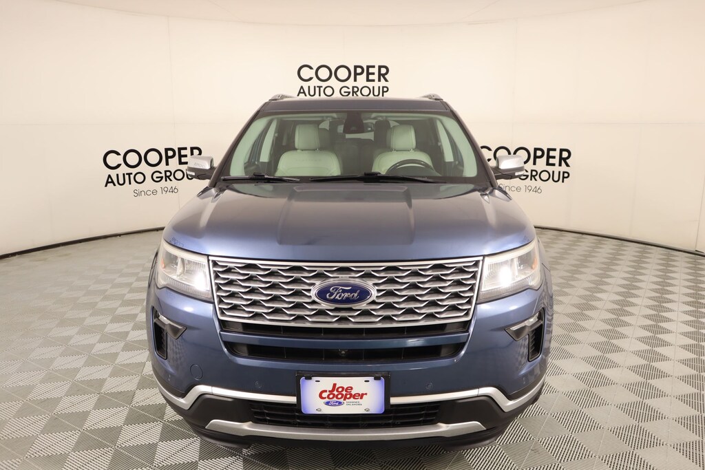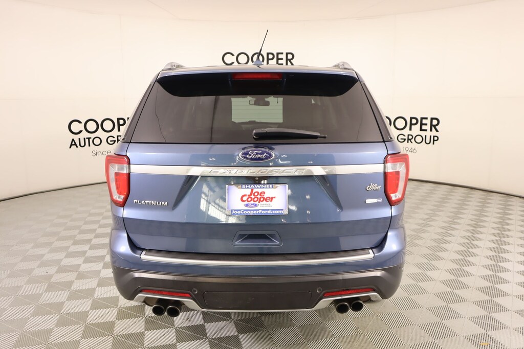 Joe Cooper Ford of Shawnee is pumped up to offer this great 2018 Ford Explorer Platinum in Blue Metallic. Well equipped with Equipment Group 600A, Explorer Platinum, 4D Sport Utility, 3.5L V6, 6-Speed Automatic with Select-Shift, 4WD, Blue Metallic, Medium Soft Ceramic Leather, 12 Speakers, 2nd Row Bucket Seats w/Power-Assist Fold, 3.16 Axle Ratio, 3rd row seats: split-bench, 4-Wheel Disc Brakes, ABS brakes, Adjustable pedals, Air Conditioning, Alloy wheels, AM/FM radio: SiriusXM, AppLink/Apple CarPlay and Android Auto, Auto High-beam Headlights, Auto tilt-away steering wheel, Auto-dimming door mirrors, Auto-dimming Rear-View mirror, Automatic temperature control, Brake assist, Bumpers: body-color, CD player, Compass, Delay-off headlights, Driver door bin, Driver vanity mirror, Dual front impact airbags, Dual front side impact airbags, Electronic Stability Control, Emergency communication system: SYNC 3 911 Assist, Exterior Parking Camera Rear, Four wheel independent suspension, Front & Second Row Floor Liners, Front anti-roll bar, Front Bucket Seats, Front Center Armrest, Front dual zone A/C, Front fog lights, Front reading lights, Fully automatic headlights, Garage door transmitter, Genuine wood dashboard insert, Genuine wood door panel insert, Heated door mirrors, Heated front seats, Heated rear seats, Heated steering wheel, Illuminated entry, Knee airbag, Lane Departure Warning System, Lea