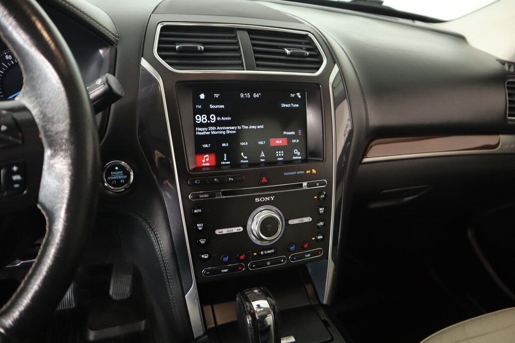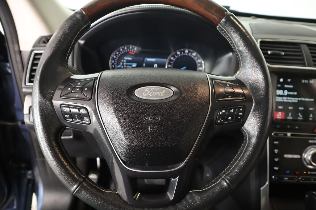 Clean Carfax, One Owner, Bluetooth, Leather, Navigation, Apple CarPlay, Android Auto, Back Up Camera, Explorer Platinum, 4D Sport Utility, 3.5L V6, 6-Speed Automatic with Select-Shift, 4WD, Blue Metallic, Medium Soft Ceramic Leather, 12 Speakers, 2nd Row Bucket Seats w/Power-Assist Fold, 3.16 Axle Ratio, 3rd row seats: split-bench, 4-Wheel Disc Brakes, ABS brakes, Adjustable pedals, Air Conditioning, Alloy wheels, AM/FM radio: SiriusXM, AppLink/Apple CarPlay and Android Auto, Auto High-beam Headlights, Auto tilt-away steering wheel, Auto-dimming door mirrors, Auto-dimming Rear-View mirror, Automatic temperature control, Brake assist, Bumpers: body-color, CD player, Compass, Delay-off headlights, Driver door bin, Driver vanity mirror, Dual front impact airbags, Dual front side impact airbags, Electronic Stability Control, Emergency communication system: SYNC 3 911 Assist, Equipment Group 600A, Exterior Parking Camera Rear, Four wheel independent suspension, Front & Second Row Floor Liners, Front anti-roll bar, Front Bucket Seats, Front Center Armrest, Front dual zone A/C, Front fog lights, Front reading lights, Fully automatic headlights, Garage door transmitter, Genuine wood dashboard insert, Genuine wood door panel insert, Heated door mirrors, Heated front seats, Heated rear seats, Heated steering wheel, Illuminated entry, Knee airbag, Lane Departure Warning System, Leather steering wheel, Low tire pressure warning, Memory seat, Navigation System, Nirvana Multi Contour Leather Cooled Bucket Seats, Occupant sensing airbag, Outside temperature display, Overhead airbag, Overhead console, Panic alarm, Passenger door bin, Passenger vanity mirror, Pedal memory, Power door mirrors, Power driver seat, Power Liftgate, Power moonroof, Power passenger seat, Power steering, Power windows, Premium audio system: Sony, Radio data system, Radio: Premium Sound from Sony, Rain sensing wipers, Rear air conditioning, Rear anti-roll bar, Rear reading lights, Rear seat center armrest, Rear window defroster, Rear window wiper, Remote keyless entry, Roof rack: rails only, Security system, Speed control, Speed-sensing steering, Speed-Sensitive Wipers, Split folding rear seat, Spoiler, Steering wheel memory, Steering wheel mounted audio controls, SYNC 3 Communications & Entertainment System, Tachometer, Telescoping steering wheel, Tilt steering wheel, Traction control, Trip computer, Turn signal indicator mirrors, Variably intermittent wipers, Ventilated front seats, Wheels: 20" Bright Machined Face Aluminum, Wheels: 20" Premium Painted Machined Aluminum.