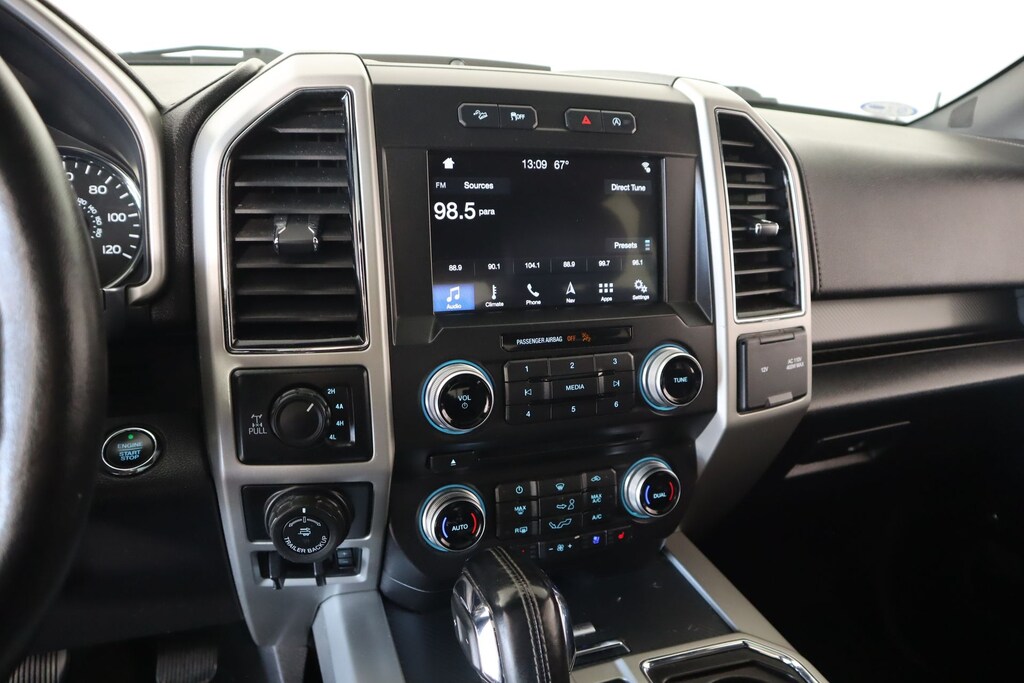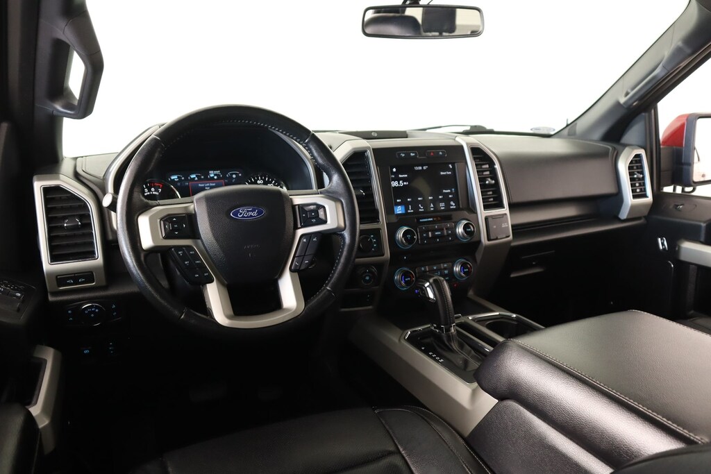 THIS VEHICLE COMES EQUIPPED WITH THE FOLLOWING OPTIONS AND FEATURES: Equipment Group 502A Luxury (110V/400W Outlet, 2nd Row Heated Seats, Automatic High Beam w/Rain-Sensing Wipers, BLIS Blind Spot Information System, Heated Steering Wheel, Leather-Trimmed Bucket Seats, LED Sideview Mirror Spotlights, Power Tilt/Telescoping Steering Column w/Memory, Quad Beam LED Headlamps & LED Taillamps/Fog Lamps, Radio: B&O Play Premium Audio System, Remote Start System w/Remote Tailgate Release, Reverse Sensing System, SYNC Connect, Universal Garage Door Opener, Voice-Activated Touchscreen Navigation System, and Windshield Wiper De-Icer), FX4 Off-Road Package, GVWR: 7,050 lbs Payload Package, Lariat Chrome Appearance Package (Chrome 2-Bar Grille w/4 Minor Bars, Chrome Angular Step Bars, Chrome Door & Tailgate Handles w/Body-Color Bezel, Chrome Skull Caps on Exterior Mirrors, Single-Tip Chrome Exhaust, and Wheels: 18" Chrome-Like PVD), Lariat Sport Appearance Package (2-Bar Body-Color Grille w/4 Minor Bars, Accent-Color Angular Step Bars, Body-Color Front & Rear Bumpers, Box Side Decals, and Wheels: 18" 6-Spoke Machined-Aluminum), Max Trailer Tow Package (Class IV Trailer Hitch Receiver, Extended Range 36 Gallon Fuel Tank, Higher-Capacity Radiator, Higher-Power Cooling Fans, Integrated Trailer Brake Controller, Pro Trailer Backup Assist, and Upgraded Front Stabilizer Bar), 4WD, 18" Machined-Aluminum Wheels, 3.31 Axle Ratio, 4-Wheel Disc Brakes, 7 Speakers, ABS brakes, Adjustable pedals, Air Conditioning, Alloy wheels, AM/FM radio: SiriusXM, AppLink/Apple CarPlay and Android Auto, Auto-dimming door mirrors, Auto-dimming Rear-View mirror, Automatic temperature control, Brake assist, Bumpers: chrome, CD player, Compass, Delay-off headlights, Driver door bin, Driver vanity mirror, Dual front impact airbags, Dual front side impact airbags, Electronic Locking w/3.55 Axle Ratio, Electronic Stability Control, Emergency communication system: SYNC 3 911 Assist, Exterior Parking Camera Rear, Front anti-roll bar, Front Center Armrest w/Storage, Front dual zone A/C, Front fog lights, Front reading lights, Front wheel independent suspension, Fully automatic headlights, Heated door mirrors, Heated front seats, Illuminated entry, Leather-Trimmed 40/20/40 Front Seat, Low tire pressure warning, Memory seat, Occupant sensing airbag, Outside temperature display, Overhead airbag, Overhead console, Panic alarm, Passenger door bin, Passenger vanity mirror, Pedal memory, Power door mirrors, Power driver seat, Power Glass Sideview Mirr w/Body-Color Skull Caps, Power passenger seat, Power steering, Power windows, Radio data system, Radio: Single-CD/SiriusXM w/7 Speakers, Rear reading lights, Rear seat center armrest, Rear step bumper, Rear window defroster, Remote keyless entry, Security system, Speed control, Speed-sensing steering, Split folding rear seat, Steering wheel mounted audio controls, SYNC 3, Tachometer, Tailgate Step w/Tailgate Lift Assist, Telescoping steering wheel, Tilt steering wheel, Traction control, Trip computer, Turn signal indicator mirrors, Twin Panel Moonroof, Variably intermittent wipers, Ventilated front seats, Voltmeter, and Wheels: 20" 6-Spoke Premium Painted Aluminum.