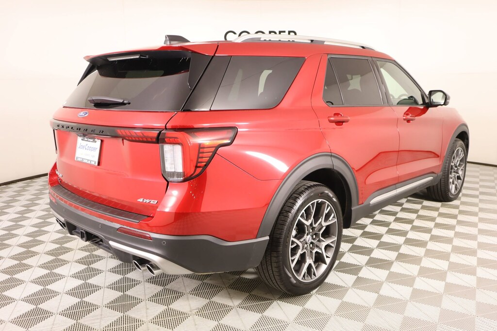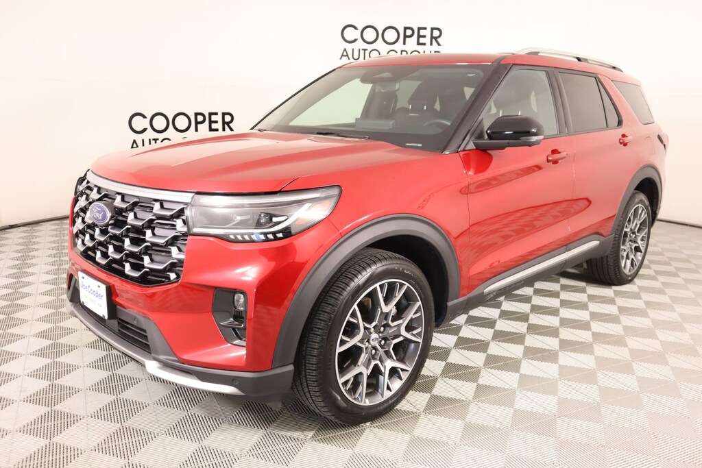 Joe Cooper Chevrolet-Cadillac of Shawnee (405) 275-0406 all qualifying units come CERTIFIED. Cooper Certification Program Details: Select Pre-owned vehicles have gone through a multi-point vehicle inspection and have been reconditioned to our highest standards. Every Cooper Certified comes with a 3-month 3,000-mile Limited Warranty.4WD.2025 Ford Explorer Platinum Red Metallic 3.0L EcoBoost V6 4D Sport Utility 4WD 18/25 City/Highway MPG 10-Speed Automatic2025 Ford Explorer Equipment Group 600A Standard Package, Lux Leather Package (Leather Seating Surfaces Sport Captain Chairs, Platinum Badges on Front Row Seats, Quilting & Stitching on Door Panels, and Quilting & Stitching on Seats), Ultimate Package (Wheels: 21 Dark Alloy-Painted Machined Aluminum), 4WD, 14 Speakers, 3.58 Non-Limited Slip Rear Axle, 3rd row seats: bench, 4-Wheel Disc Brakes, ABS brakes, ActiveX Trimmed Sport Captain's Chairs, Air Conditioning, Alloy wheels, AM/FM radio: SiriusXM with 360L, Apple CarPlay/Android Auto, Auto High-beam Headlights, Auto-dimming door mirrors, Auto-dimming Rear-View mirror, Automatic temperature control, Brake assist, Bumpers: body-color, Compass, Delay-off headlights, Driver door bin, Driver vanity mirror, Dual front impact airbags, Dual front side impact airbags, Electronic Stability Control, Emergency communication system: 911 Assist, Exterior Parking Camera Rear, Ford BlueCruise Equipped (1-Year Plan) (DISC), Four wheel independent suspension, Front & 2nd Rows Floor Liners w/Carpet Floor Mats, Front anti-roll bar, Front Bucket Seats, Front Center Armrest, Front dual zone A/C, Front fog lights, Front License Plate Bracket, Front reading lights, Fully automatic headlights, Garage door transmitter, Heated door mirrors, Heated front seats, Heated rear seats, Heated steering wheel, Illuminated entry, Internet access capable: FordPass Connect 5G, Knee airbag, Leather steering wheel, Low tire pressure warning, Memory seat, Navigation System, Occupant sensing airbag, Outside temperature display, Overhead airbag, Overhead console, Panic alarm, Passenger door bin, Passenger vanity mirror, Power door mirrors, Power driver seat, Power Liftgate, Power moonroof, Power passenger seat, Power steering, Power windows, Radio data system, Radio: B&O Sound System by Bang & Olufsen w/HD, Rain sensing wipers, Rear air conditioning, Rear anti-roll bar, Rear reading lights, Rear window defroster, Rear window wiper, Remote keyless entry, Security system, Speed control, Speed-sensing steering, Speed-Sensitive Wipers, Split folding rear seat, Spoiler, Steering wheel mounted audio controls, Tachometer, Telescoping steering wheel, Tilt steering wheel, Traction control, Trip computer, Turn signal indicator mirrors, Variably intermittent wipers, Ventilated front seats, and Wheels: 20 Luster Nickel-Painted Aluminum.