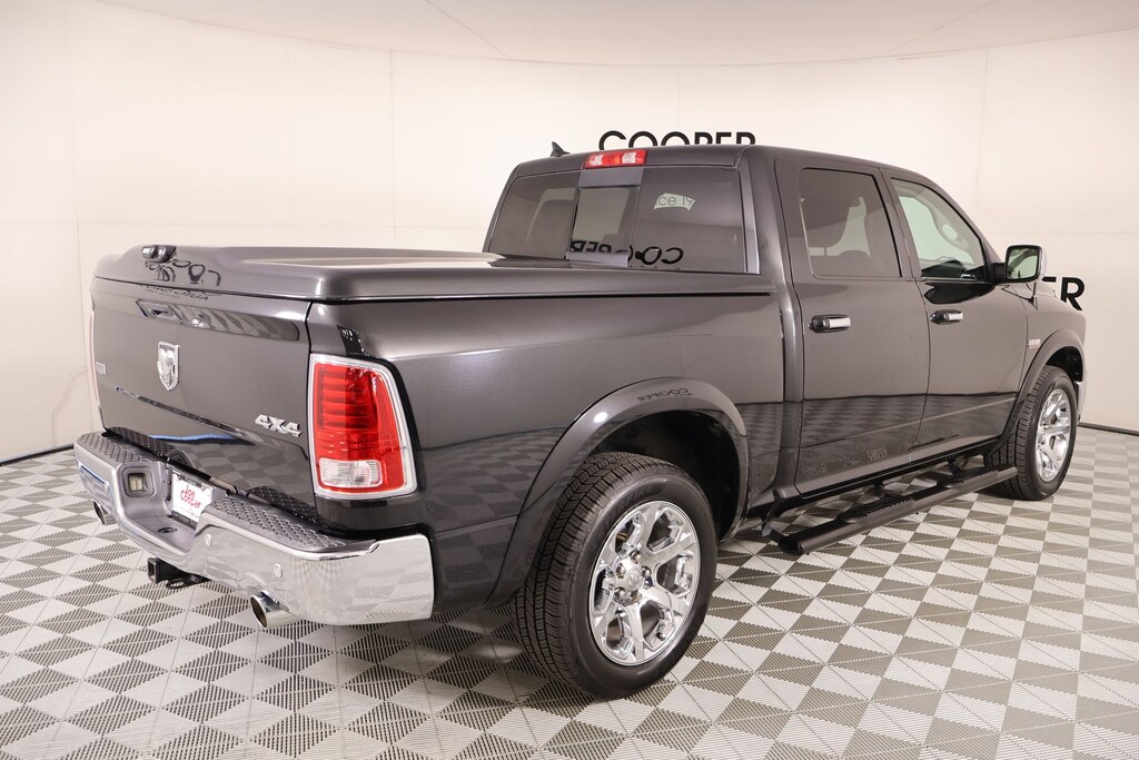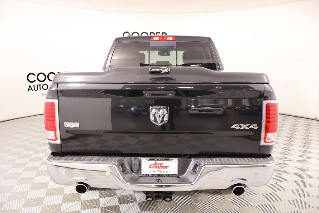 Joe Cooper Chrysler Dodge Jeep Ram of Yukon **405-265-1400** Brilliant Black Crystal Pearlcoat 2017 Ram 1500 Laramie 4WD HEMI 5.7L V8 Multi Displacement VVT THIS VEHICLE COMES EQUIPPED WITH THE FOLLOWING OPTIONS AND FEATURES: Convenience Group (Auto High Beam Headlamp Control, Keyless Enter-N-Go, Rain Sensitive Windshield Wipers, and Remote Proximity Keyless Entry), Protection Group (Tow Hooks), Quick Order Package 26H Laramie, Cooper Certified Certified, 20" x 9" Chrome Clad Aluminum Wheels, 4-Wheel Disc Brakes, 8.4" Touchscreen Display, ABS brakes, Active Grille Shutters, Adjustable pedals, Air Conditioning, Anti-Spin Differential Rear Axle, Auto-dimming Rear-View mirror, Automatic temperature control, Brake assist, Bright Rotary Shifter, Bumpers: chrome, Compass, Delay-off headlights, Dual front impact airbags, Dual front side impact airbags, Electronic Shift, Electronic Stability Control, Emergency communication system: Uconnect Access, Front anti-roll bar, Front dual zone A/C, Front fog lights, Front wheel independent suspension, Fully automatic headlights, Heated Front Seats, Heated Steering Wheel, Illuminated entry, Integrated Voice Command w/Bluetooth, Low tire pressure warning, Memory seat, Occupant sensing airbag, Overhead airbag, ParkView Rear Back-Up Camera, Pedal memory, Power 10-Way Memory Driver & 6-Way Passenger Seats, Power driver seat, Power steering, Power windows, Radio: Uconnect 3C w/8.4" Display, Rear 60/40 Split Folding Seat, Rear anti-roll bar, Remote keyless entry, Remote Start System, Security system, Speed control, Steering wheel mounted audio controls, Tilt steering wheel, Tip Start, Traction control, Ventilated Front Seats, 10 Speakers, 115V Auxiliary Power Outlet, 3.21 Rear Axle Ratio, Alloy wheels, AM/FM radio, Audio Jack Input for Mobile Devices, Audio memory, Auto-dimming door mirrors, Body Color Fender Flares, Center Hub, Driver door bin, Driver vanity mirror, Folding Flat Load Floor Storage, Front Center Armrest w/Storage, Front reading lights, Garage door transmitter, GPS Antenna Input, Heated door mirrors, Heated front seats, Heated steering wheel, High Back Seats, Leather steering wheel, Leather Trim 40/20/40 Bench Seat, LED Bed Lighting, Media Hub (USB, AUX), Outside temperature display, Overhead console, Panic alarm, ParkSense Front/Rear Park Assist System, Passenger door bin, Passenger vanity mirror, Power door mirrors, Power passenger seat, Radio data system, Rear seat center armrest, Rear step bumper, Remote USB Port, SIRIUSXM Satellite Radio, Split folding rear seat, Tachometer, Trip computer, Turn signal indicator mirrors, Uconnect Access, Variably intermittent wipers, Ventilated front seats, and Voltmeter. REAR VIEW CAMERA, LEATHER, ONE OWNER, KEYLESS ENTRY, BLUETOOTH HANDS FREE, 20" x 9" Chrome Clad Aluminum Wheels, 4-Wheel Disc Brakes, 8.4" Touchscreen Display, ABS brakes, Active Grille Shutters, Adjustable pedals, Air Conditioning, Anti-Spin Differential Rear Axle, Auto High Beam Headlamp Control, Auto-dimming Rear-View mirror, Automatic temperature control, Brake assist, Bright Rotary Shifter, Bumpers: chrome, Compass, Convenience Group, Delay-off headlights, Dual front impact airbags, Dual front side impact airbags, Electronic Shift, Electronic Stability Control, Emergency communication system: Uconnect Access, Front anti-roll bar, Front dual zone A/C, Front fog lights, Front wheel independent suspension, Fully automatic headlights, Heated Front Seats, Heated Steering Wheel, Illuminated entry, Integrated Voice Command w/Bluetooth, Keyless Enter-N-Go, Low tire pressure warning, Memory seat, Occupant sensing airbag, Overhead airbag, ParkView Rear Back-Up Camera, Pedal memory, Power 10-Way Memory Driver & 6-Way Passenger Seats, Power driver seat, Power steering, Power windows, Protection Group, Quick Order Package 26H Laramie, Radio: Uconnect 3C w/8.4" Display, Rain Sensitive Windshield Wipers, Rear 60/40 Split Folding Seat, Rear anti-roll bar, Remote keyless entry, Remote Proxim