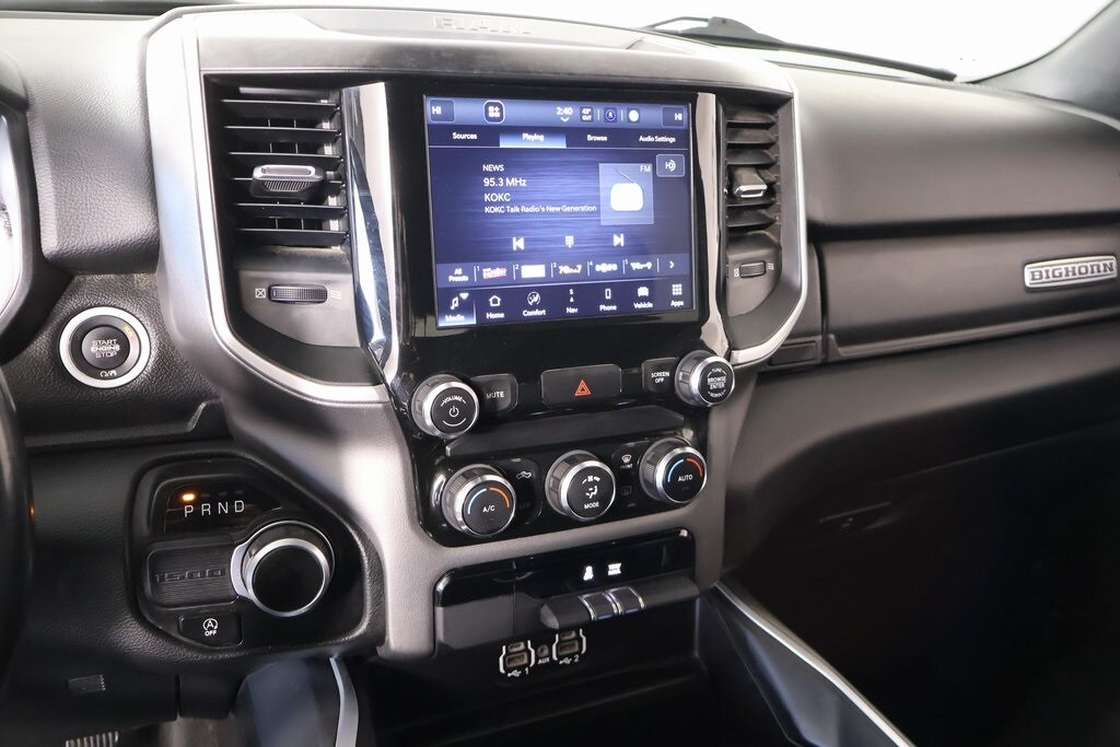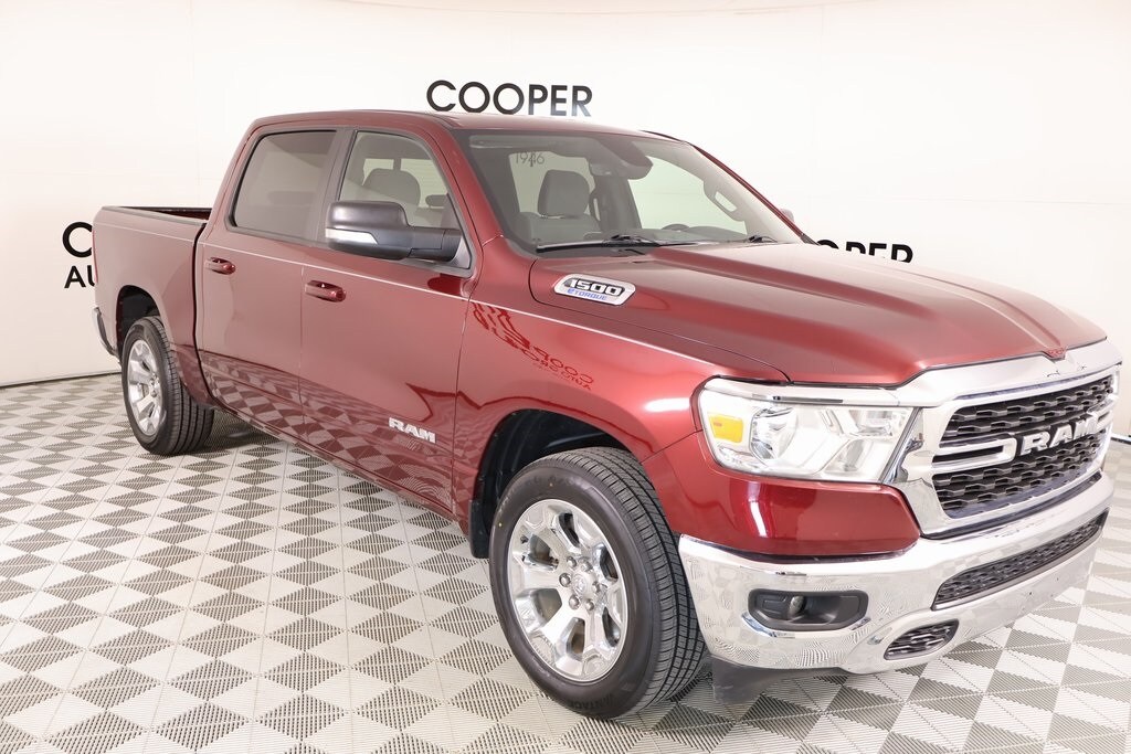 2022 Ram 1500 Big Horn Level 1 Equipment Group (2nd Row In Floor Storage Bins, 4G LTE Wi-Fi Hot Spot, 8.4" Touchscreen Display, Apple CarPlay, Auto-Dimming Exterior Driver Mirror, Auto-Dimming Rear-View Mirror, Black Exterior Mirrors, Black Premium Power Mirrors, Bluetooth Handsfree Phone & Audio, Class IV Receiver Hitch, Cluster 3.5" TFT Color Display, Connectivity - US/Canada, Convex Wide-Angle Mirror Insert, Exterior Mirrors Courtesy Lamps, Exterior Mirrors w/Heating Element, Exterior Mirrors w/Supplemental Signals, For Details, Visit DriveUconnect.com, Global Telematics Box Module (TBM), Glove Box Lamp, Google Android Auto, GPS Antenna Input, Integrated Center Stack Radio, Power 2-Way Driver Lumbar Adjust, Power 8-Way Driver Seat, Power Adjustable Pedals, Power-Folding Mirrors, Radio: Uconnect 5 W w/8.4" Display, Rear Dome w/On/Off Switch Lamp, Rear Power Sliding Window, Rear Window Defroster, SiriusXM Radio Service, SiriusXM Satellite Radio, Sun Visors w/Illuminated Vanity Mirrors, Universal Garage Door Opener, and USB Host Flip), Quick Order Package 23Z Big Horn (Big Horn Badge), Cooper Certified Certified, Air Conditioning ATC w/Dual Zone Control, GPS Navigation, 3 Rear Seat Head Restraints, 3.21 Rear Axle Ratio, 4 Way Front Headrests, 4-Wheel Disc Brakes, 48V Belt Starter Generator, 6 Speakers, ABS brakes, Air Conditioning, All R1 High Radios, All Radio Equipped Vehicles, Alloy wheels, AM/FM radio, Brake assist, Bumpers: chrome, Cloth Bench Seat, Cluster 7.0" TFT Color Display, Compass, Connected Travel & Traffic Services, Delay-off headlights, Disassociated Touchscreen Display, Driver door bin, Dual front impact airbags, Dual front side impact airbags, Electronic Stability Control, Emergency communication system: SiriusXM Guardian, Exterior Parking Camera Rear, Front anti-roll bar, Front Center Armrest w/Storage, Front fog lights, Front reading lights, Front Seat Back Map Pockets, Front wheel independent suspension, Fully automatic headlights, HD Radio, Heated door mirrors, Illuminated entry, Integrated Voice Command w/Bluetooth, Leather steering wheel, Low tire pressure warning, Occupant sensing airbag, Outside temperature display, Overhead airbag, Overhead