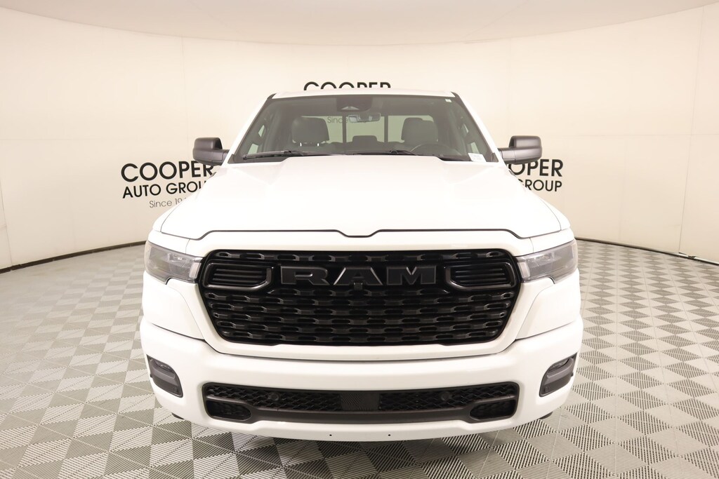 2025 Ram 1500 Quick Order Package 23A Tradesman, Sport Appearance Package (Black Interior Accents, Body Color Front Bumper, Body Color Rear Bumper w/Step Pads, Bridgestone Brand Tires, Front & Rear Floor Mats, Front LED Fog Lamps, Grille Surround 1 Body Color Texture 1 Black, and Wheels: 20" x 9" Aluminum Polished Painted), Tradesman Level 1 Equipment Group (3 Rear Seat Head Restraints, 4 Way Front Headrests, 40/20/40 Split Bench Seat, Cloth Bench Seat, Front Center Seat Cushion Storage, Front Seat Back Map Pockets, Manual Adjust 4-Way Driver Seat, Manual Adjust 4-Way Front Passenger Seat, Rear 60/40 Folding Seat, Rear Power Sliding Window, Seat Parts Module II, and SiriusXM Satellite Radio), Cooper Certified Certified, Occupant sensing airbag, Radio: Uconnect 5 w/8.4" Display, Remote keyless entry, 3.21 Rear Axle Ratio, 3.55 Rear Axle Ratio, 4-Wheel Disc Brakes, 6 Speakers, ABS brakes, Air Conditioning, AM/FM radio, Apple CarPlay/Android Auto, Auto High-beam Headlights, Black Exterior Mirrors, Brake assist, Compass, Delay-off headlights, Driver door bin, Dual front impact airbags, Dual front side impact airbags, Electronic Stability Control, Exterior Mirrors w/Heating Element, Front anti-roll bar, Front Center Armrest, Front reading lights, Front wheel independent suspension, Fully automatic headlights, Heated door mirrors, Heavy Duty Vinyl 40/20/40 Split Bench Seat, Illuminated entry, Low tire pressure warning, Manual Folding Exterior Mirrors, Outside temperature display, Overhead airbag, Overhead console, Panic alarm, ParkView Rear Back-Up Camera, Passenger door bin, Passenger vanity mirror, Power door mirrors, Power steering, Power windows, Radio data system, Rear anti-roll bar, Rear step bumper, Speed control, Supplier Part Tracking (J-1), Tachometer, Telescoping steering wheel, Tilt steering wheel, Traction control, Variably intermittent wipers, Voltmeter, and Wheels: 18" x 7.5" Steel Painted.
